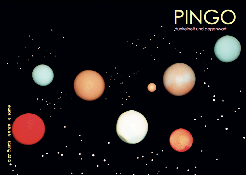 PINGO VIII is out of stock you can find a printed copy at Stedelij Museum's library in Amsterdam (Museumplein 10) in case you wish to flip through some physical pages, however. You can book an appointment for that here Alternatively, a printed copy of PINGO DUNKELHEIT & GEGENWART can be ordered here go back |
